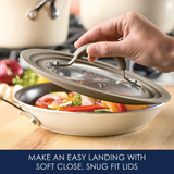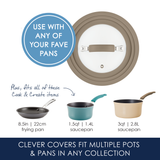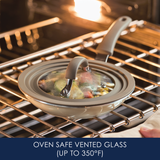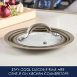 This universal silicone-rimmed glass lid is durable and versatile, with an innovative stepped edge so it fits any cookware with a rim diameter from 6 to 8.5 inches - saving so much cabinet space!